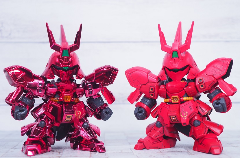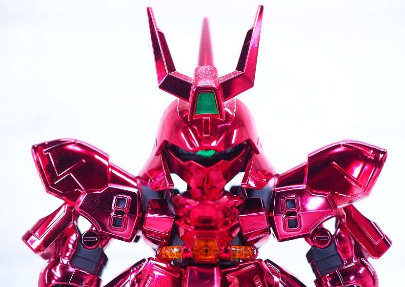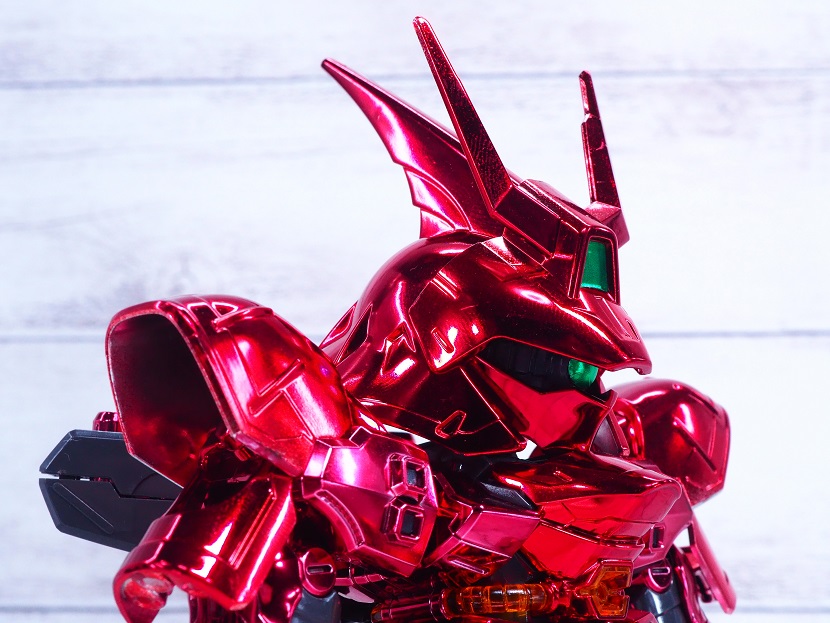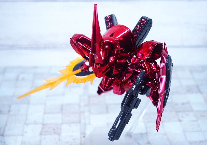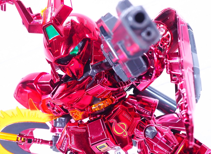 サザビーは曲面的な装甲デザイン箇所が多いのでメッキが似合いますね。