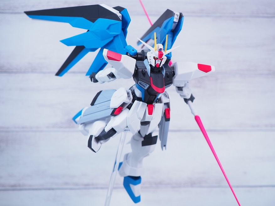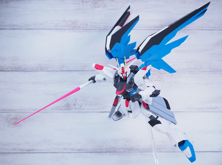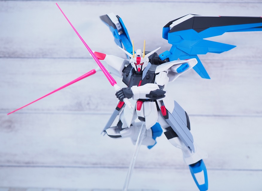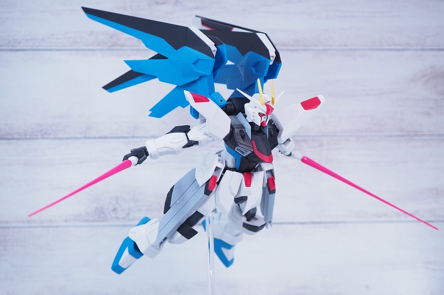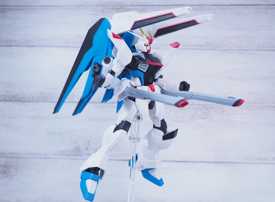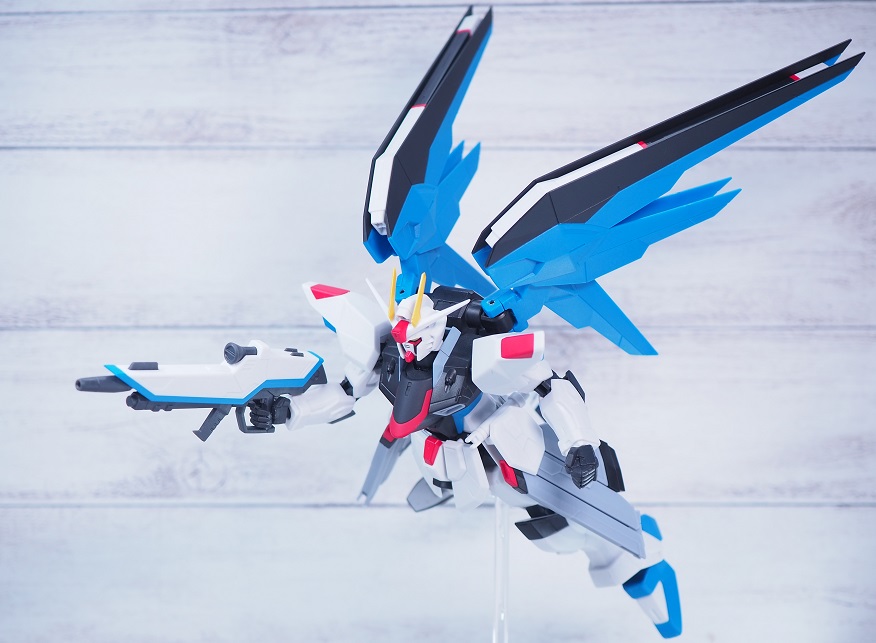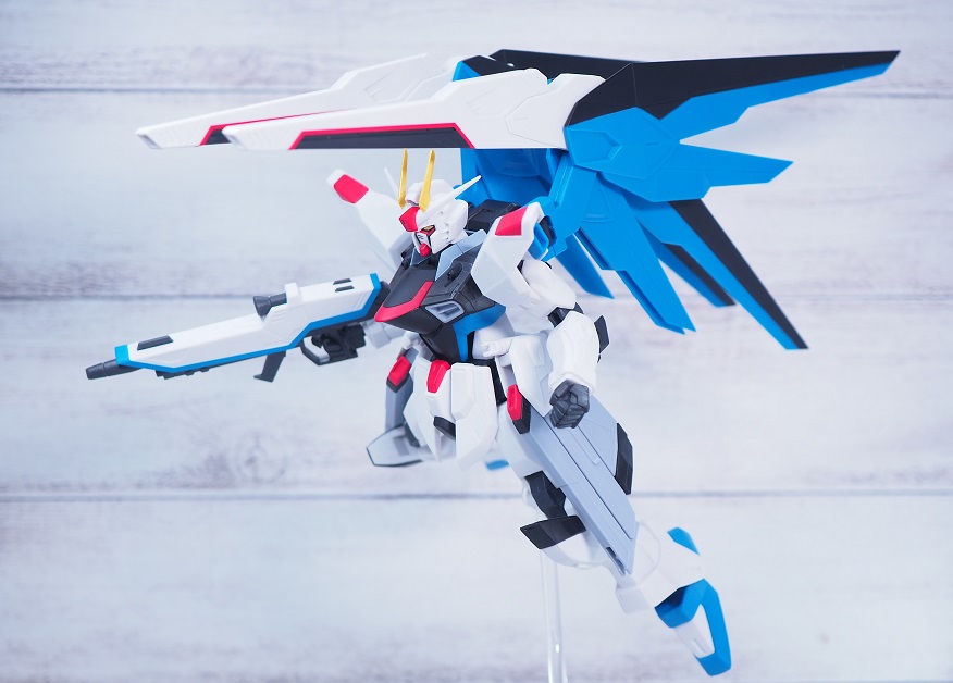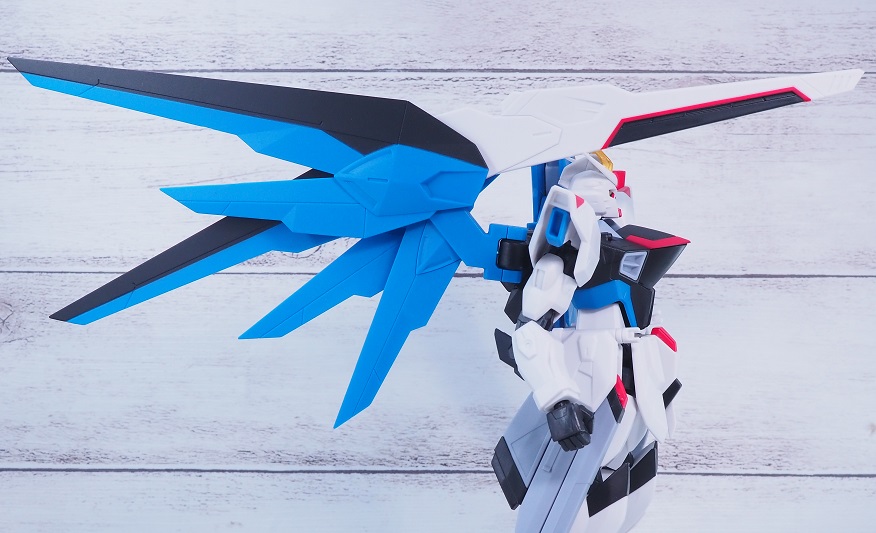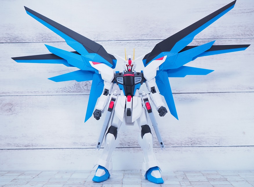 今回のフリーダムは背中のウイングが大きめに造形されている為、シリーズの中でも一番ボリュームがある仕上がりになっていると思います。