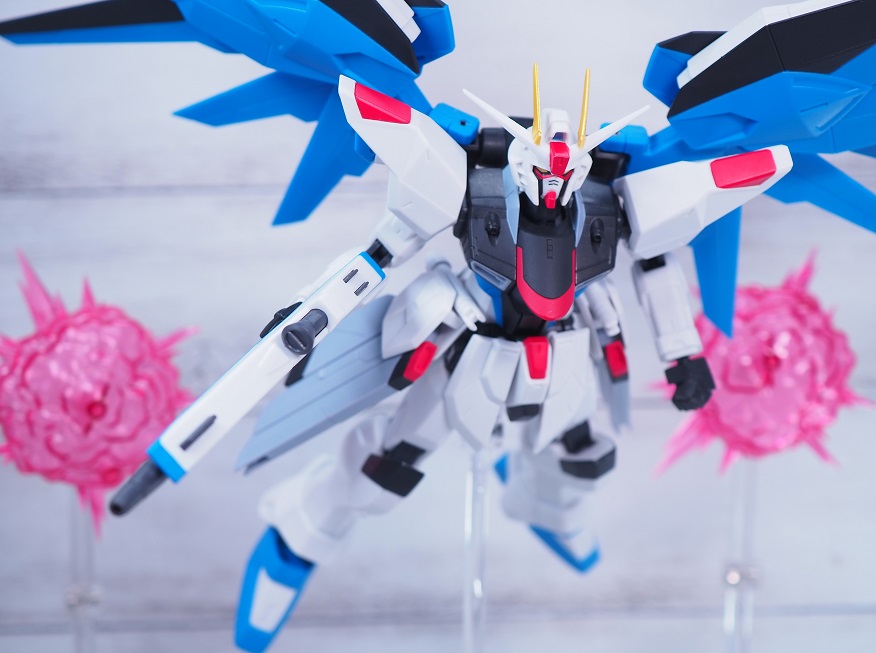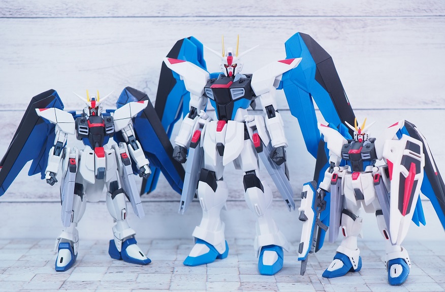 フリーダムガンダムは特にメインカメラやフェイス回りの塗装が細かく塗り分けられている印象。