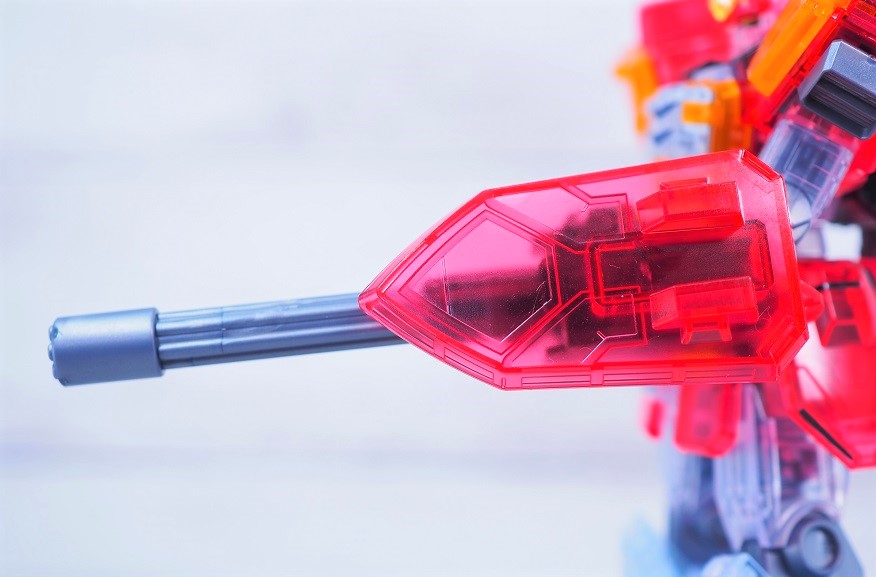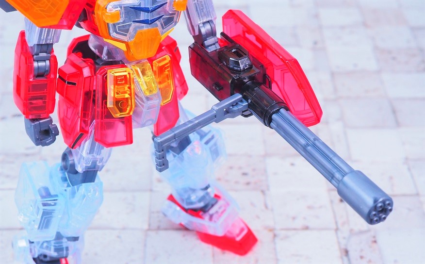 内部のガトリングが透けて見えるんですが、おそらくこれが狙いであえてクリアパーツの透明度を高くしているんだと思います。