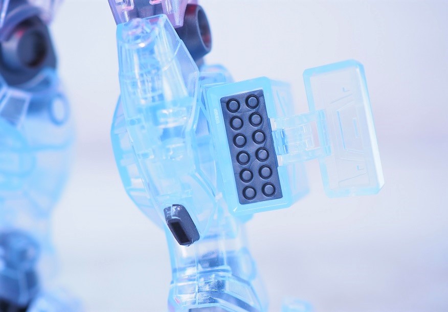 内部造形と関節は、よりクリアカラーと相性がいいメタリック調の成形色になっています。