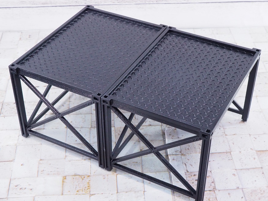 このように側面に2つのラックを繋ぐこともできるので、やっぱり複数買った方が遊びの幅が広がりますね。