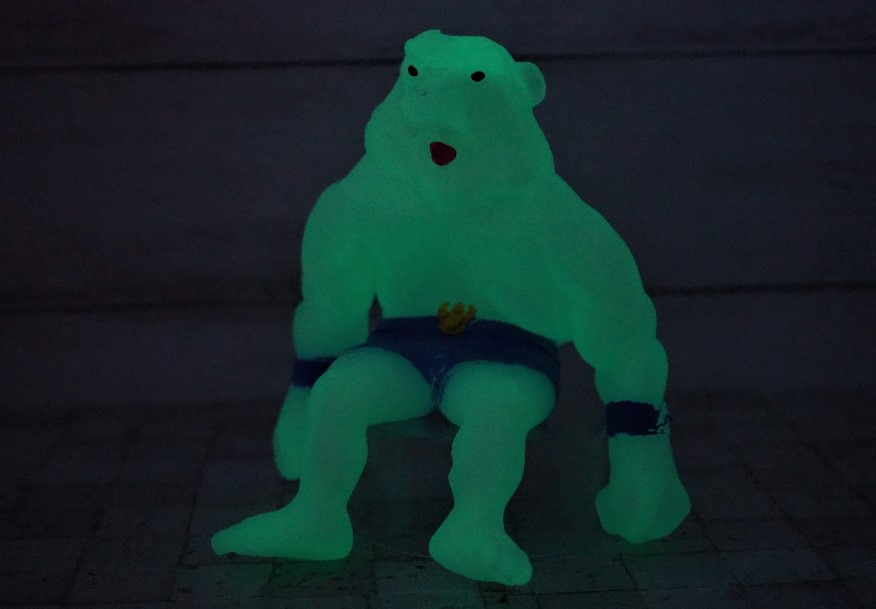 ブリザードベアーは蓄光素材で暗闇だと怪しく緑色に光ります。