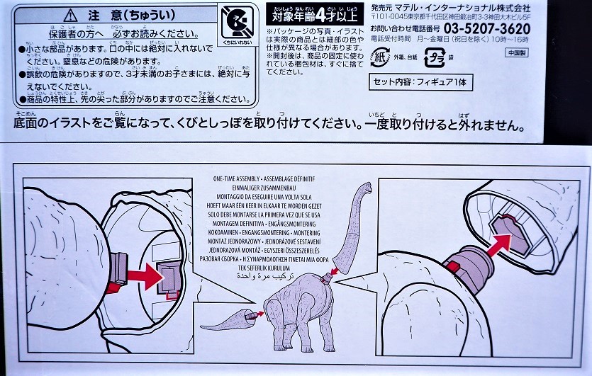 ブラキオサウルスは「頭、胴体、尻尾」の3パーツに分割された状態で封入されております。