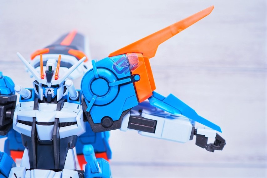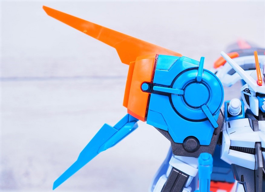 肩アーマーは新規パーツとエールストライカーのパーツの組み合わせによって構成された癖が強めのデザイン。