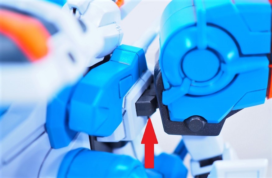 なんと膝上の裏には本来ストライクの肩アーマーとして使用されるパーツが組み込まれています。