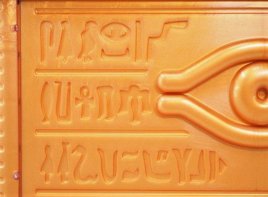古代エジプトの象形文字「ヒエログリフ」は立体感ある凹凸で表現。
