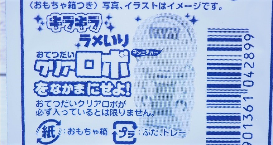 今回のおまけは完全オリジナル限定おもちゃ「クリアロボ」がランダム封入されております。