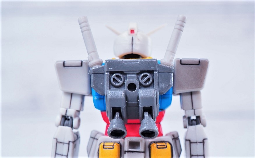 アメリカで発売されたMIA「Gファイター」に対応したガンダムなので、肩やバックパック上部には接続穴が開いています。