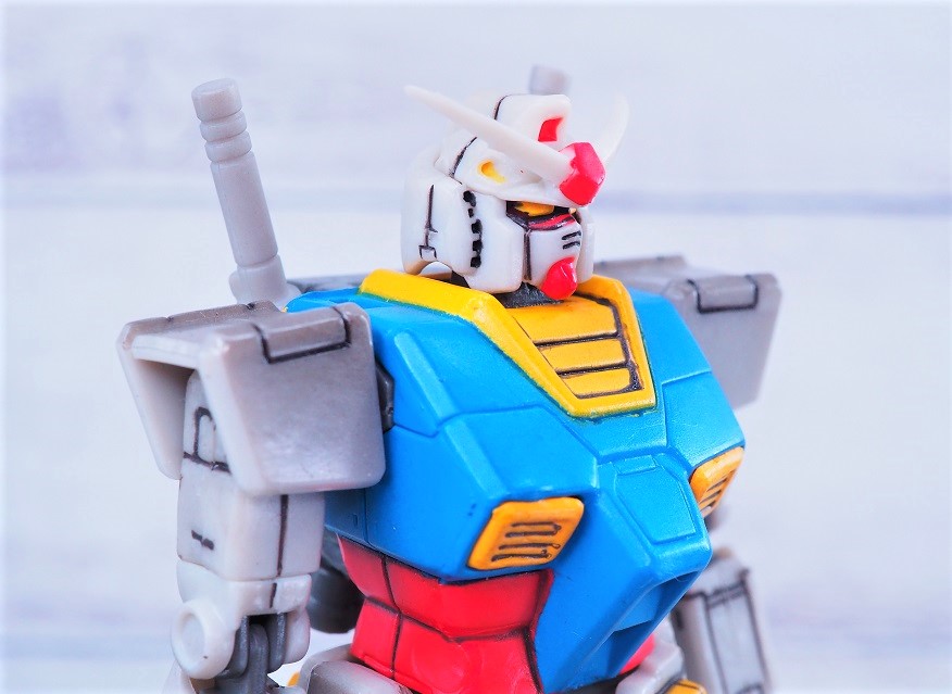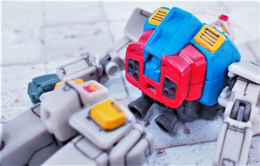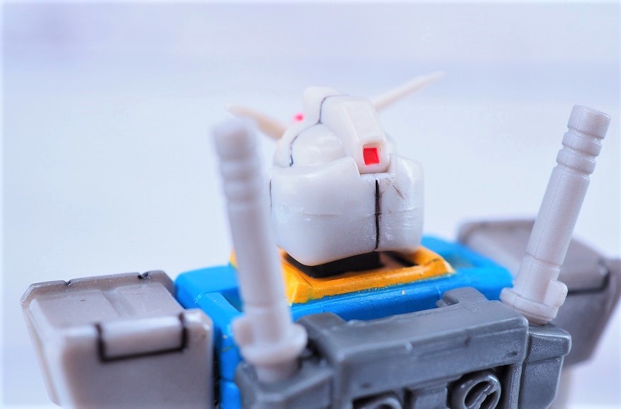 個体差で塗装にブレがありますが、頭部バルカンやセンサーなど小サイズながらも細かな塗分け 。