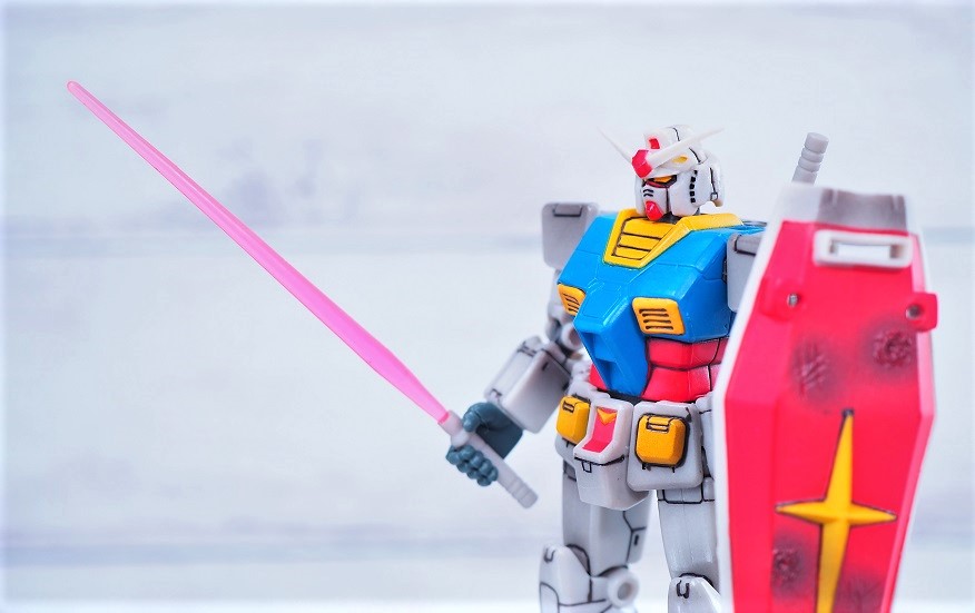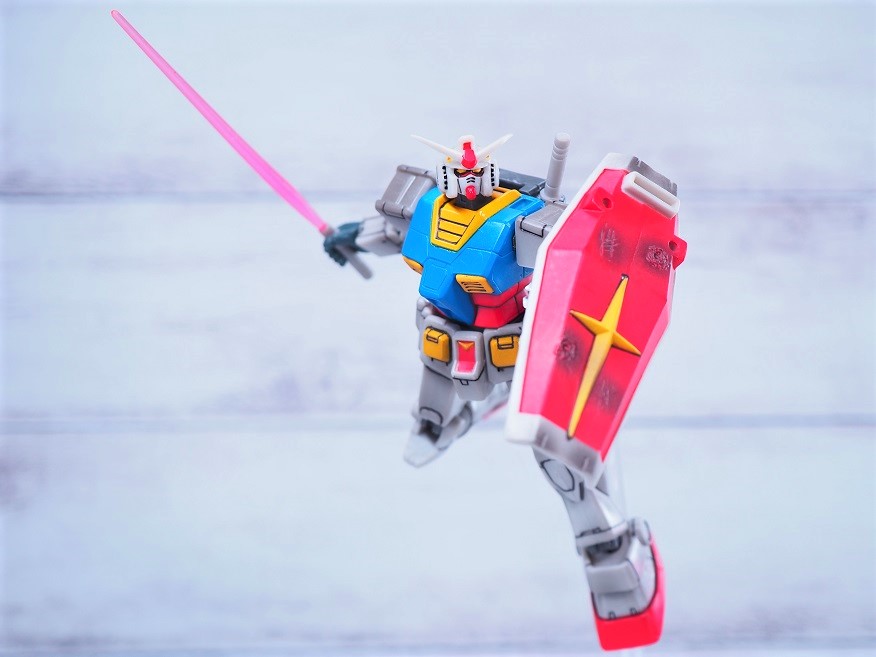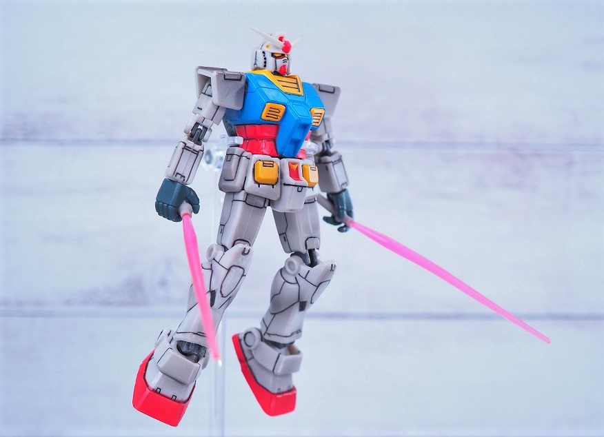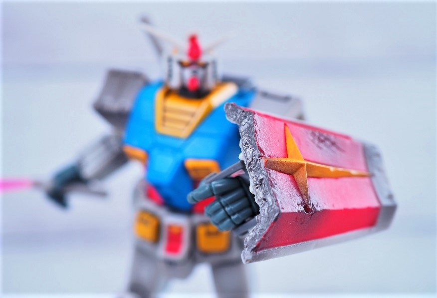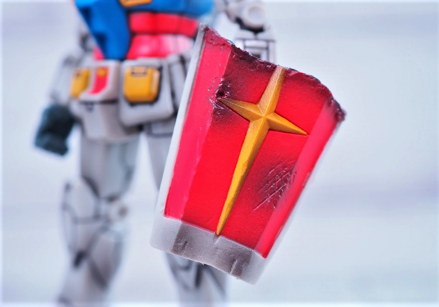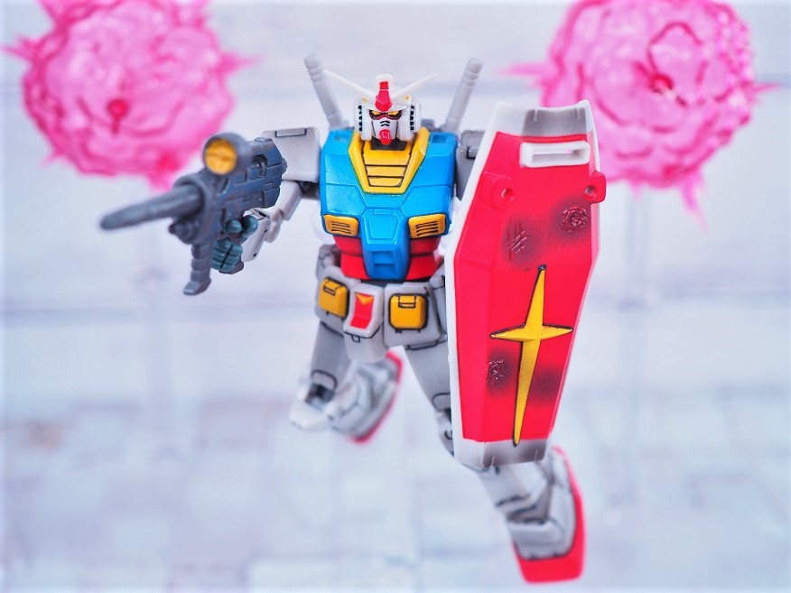 あらかじめ全身にすす焼けたような汚し塗装が施されたガンダム。