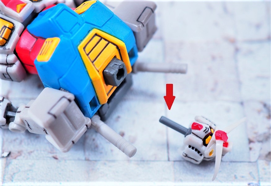 頭部とビームサーベルを取り外すと満身創痍になったガンダムが完成。