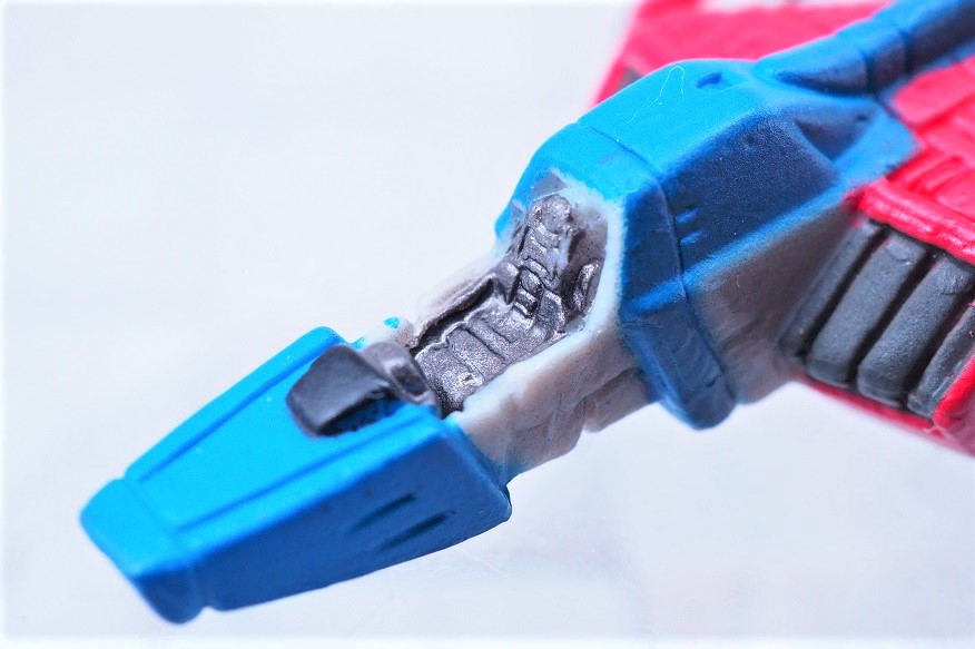 こちらはGブルのギミックの名残で胴体の断面にはメカ造形があります。