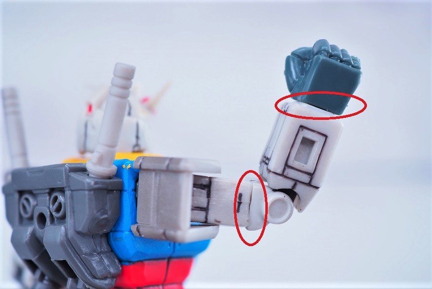 腕部は肩がボールジョイント可動で二の腕と手首が回転。