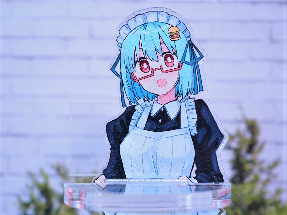 描き下ろしメイド姿のイラストを使用したアクリル素材のメガネスタンドとなっております。