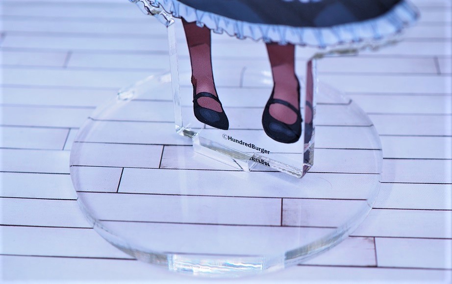 アクリルの厚みは5mmで、一般的なアクリルフィギュアよりも厚みがあってかなり頑丈な作りです。