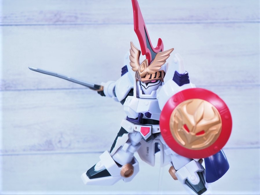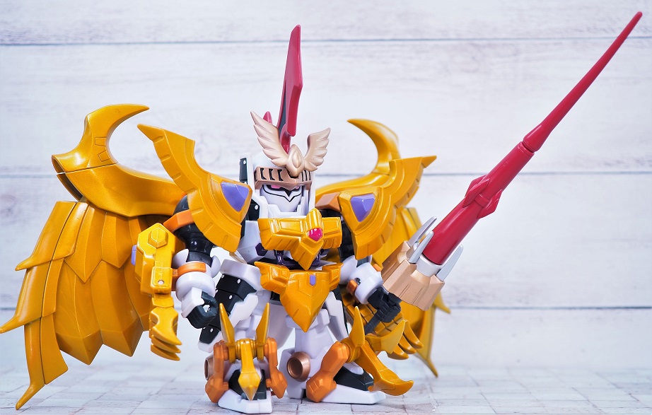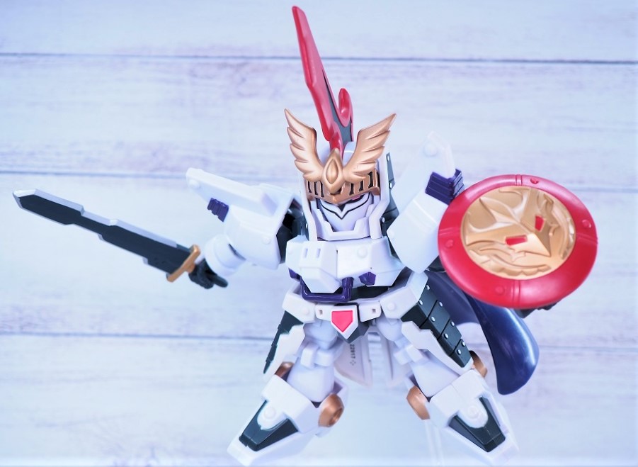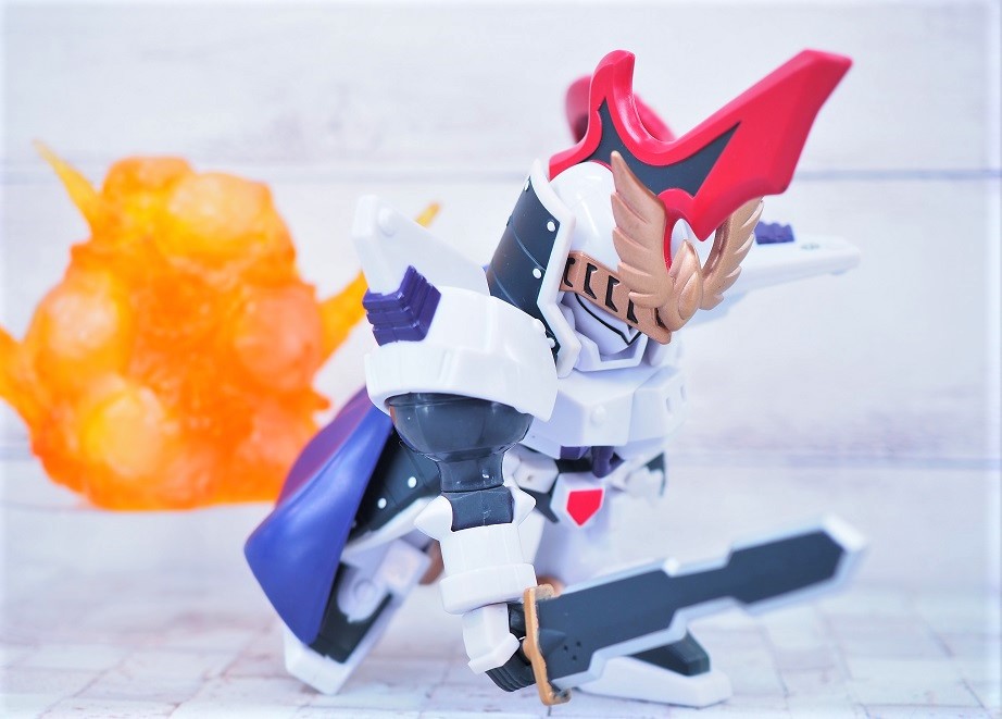 機体モチーフは「トールギス+トールギスⅢ」ですが、元ネタはSDガンダム英雄伝に登場した「迅風騎士トールギス」。
