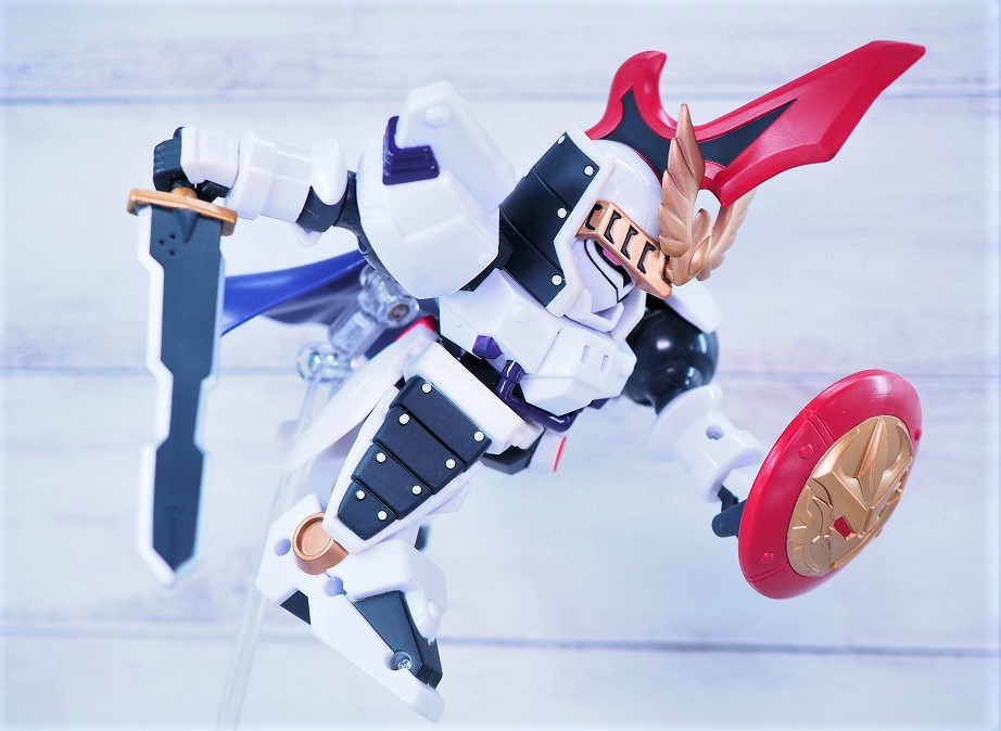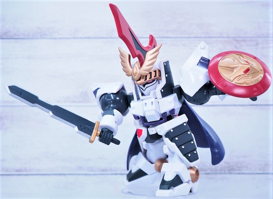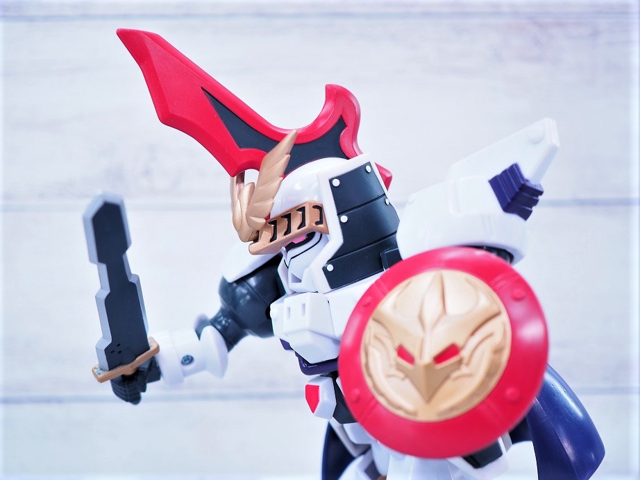 騎士甲冑とトールギスが合わさったデザインがとてもよく似合っており、顔もアレンジもめちゃくちゃかっこいい。