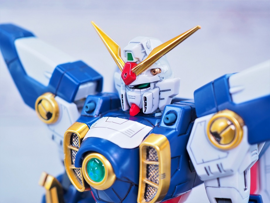 ウイングガンダムの注目点はヘルメットのひさし部形状。