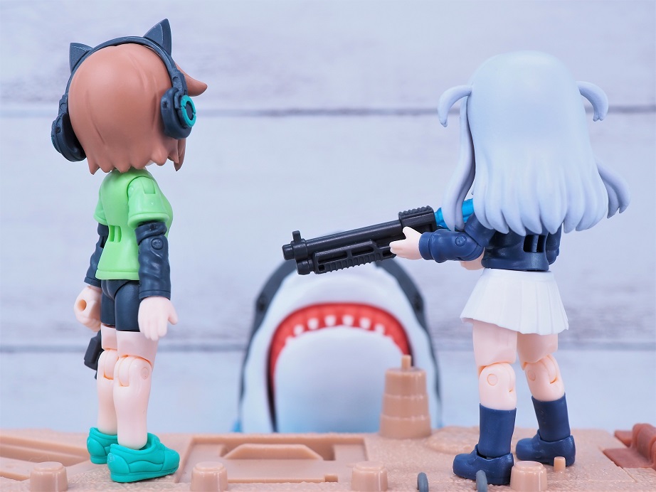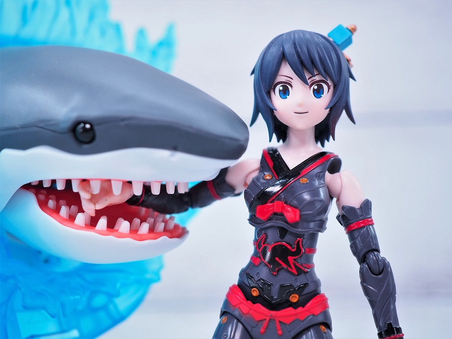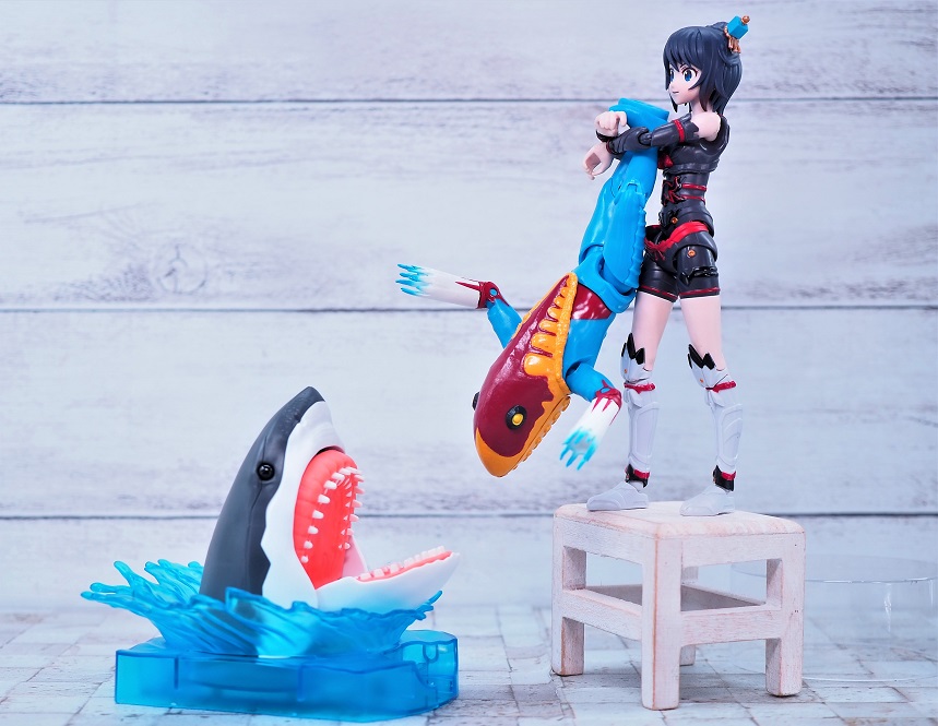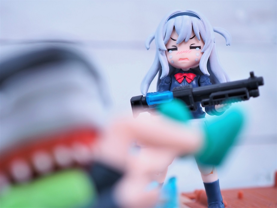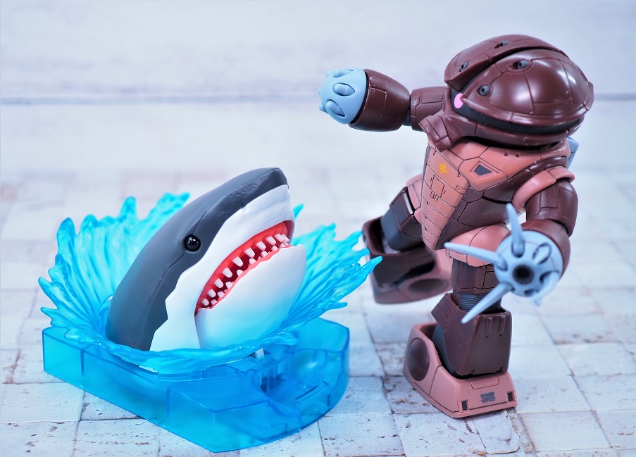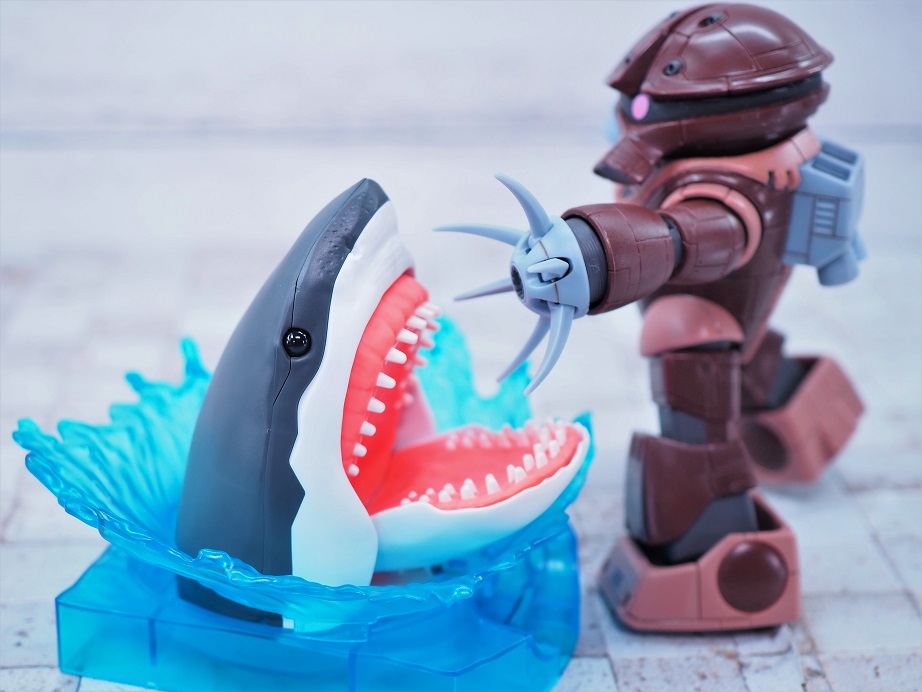 突然あらわれた後輩のサメプラモに襲われる30MSの図。