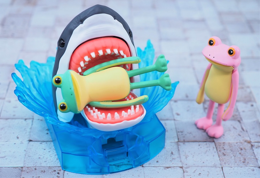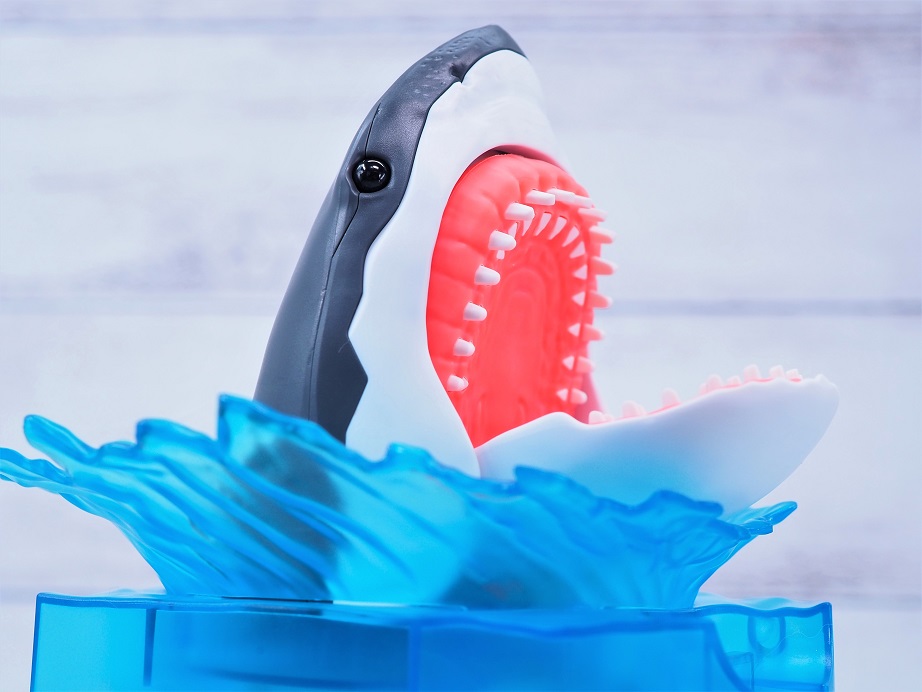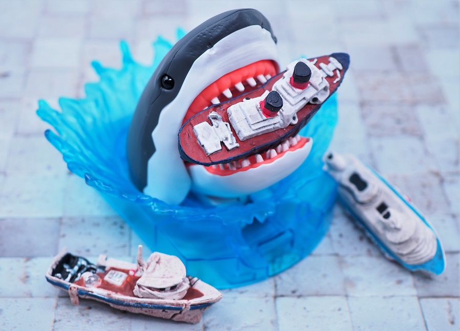 サメなのでやっぱり食われるネタが鉄板ですね。
