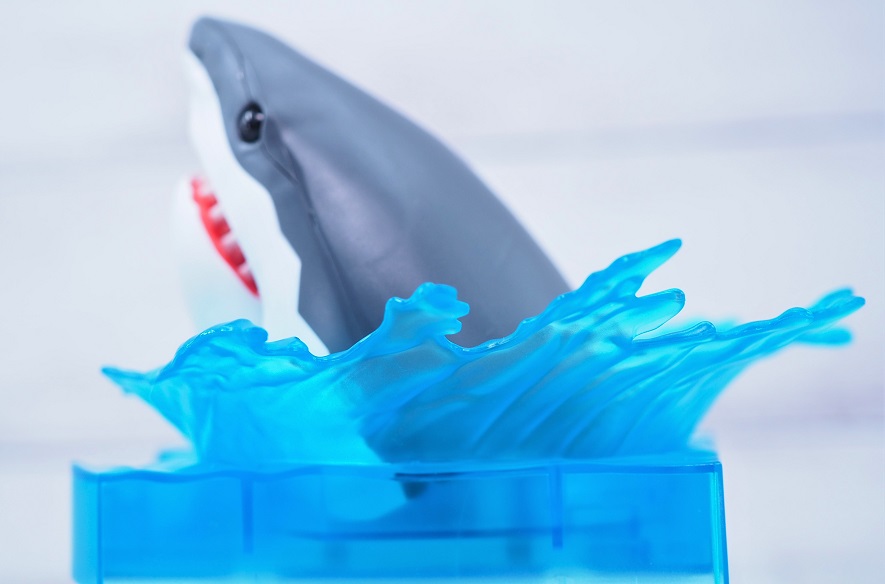 第一弾は色が変わる特殊成形材料を使用した「マンモス」でしたが、今回は質感の違いをパーツによって表現した「ホホジロザメ」になります。