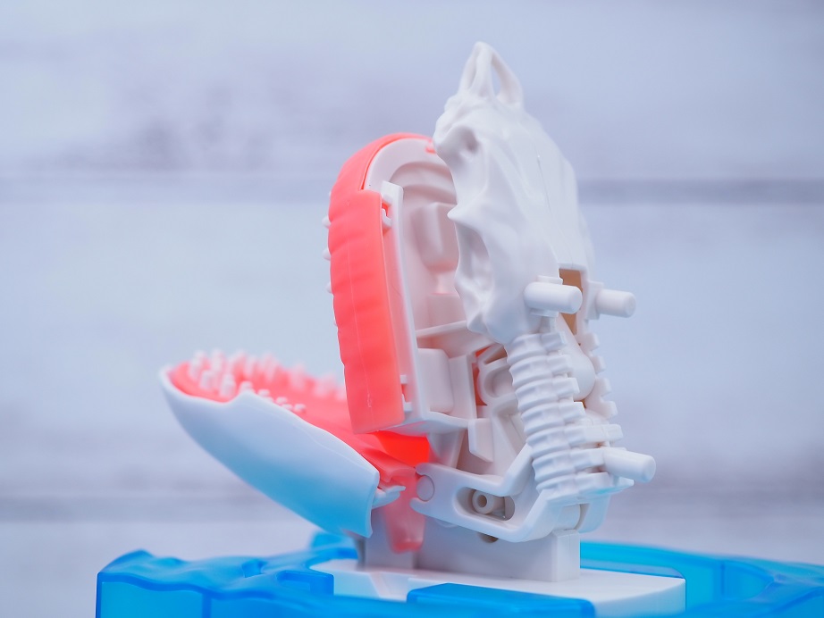 ただパカパカと顎が動くだけではなく、本物の骨格をイメージとした細かな動きがプラモデルのギミックとして再現。