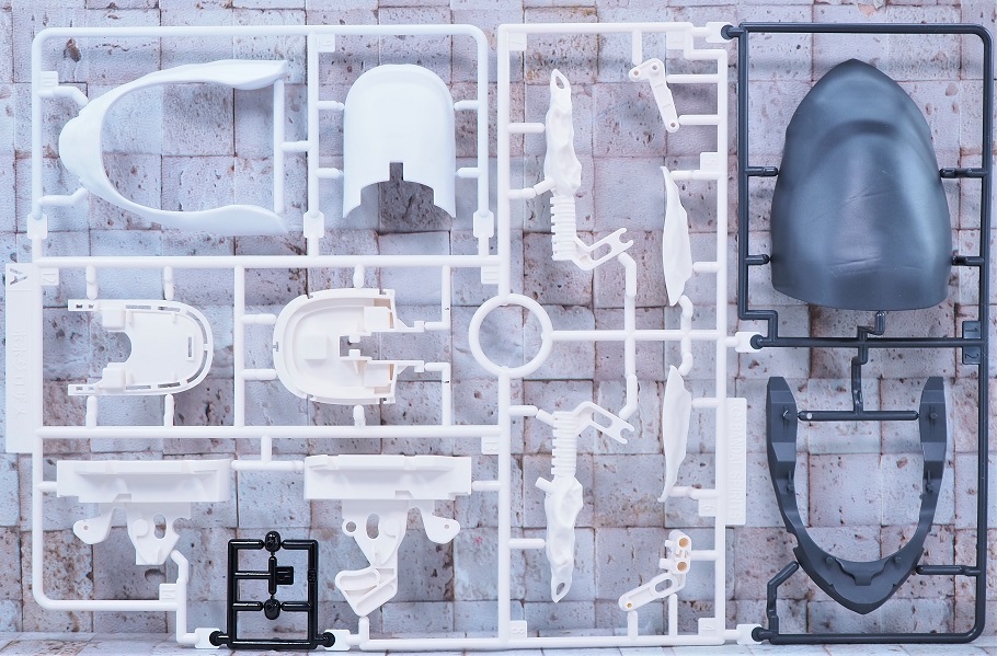注目は色が異なる2色のホワイト、光沢のあるパーツ、艶が抑えられたパーツが1枚のランナーに納まっているところだと思います。