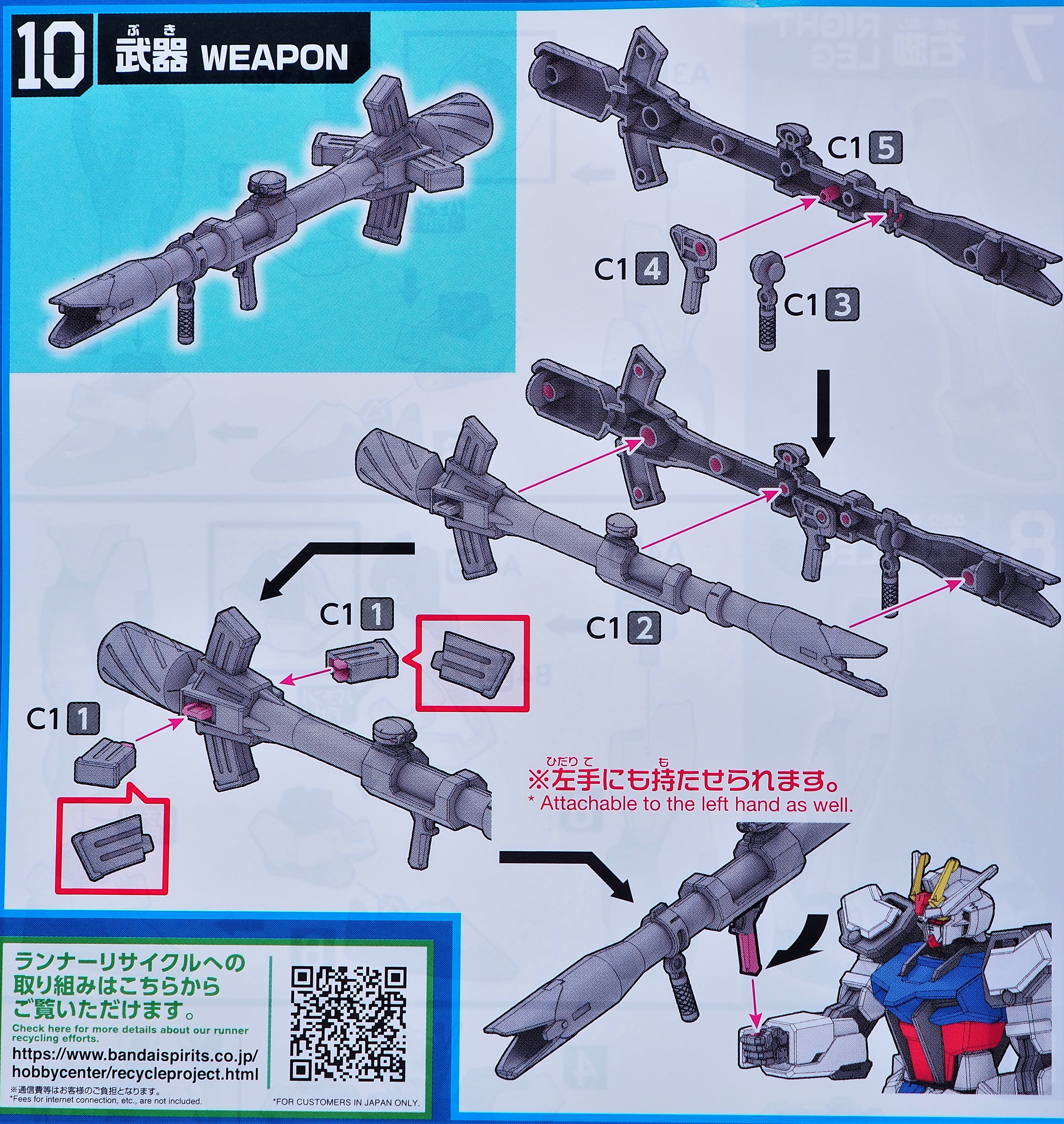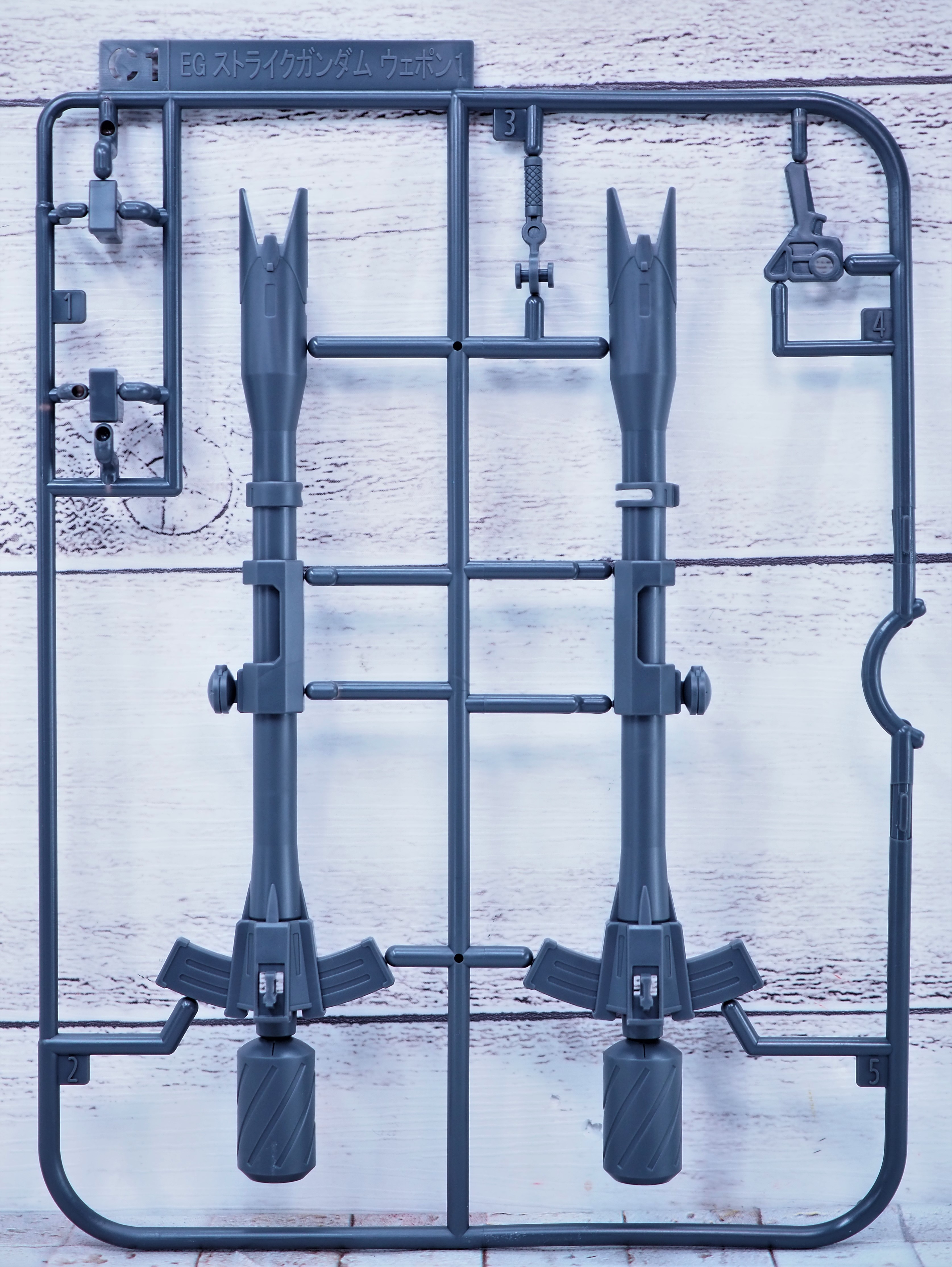 ガンダムベース限定の「システムウェポンキット010」にも同形状の武器がラインナップされておりましたが、EG版はパーツが簡略化されています。