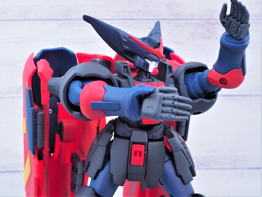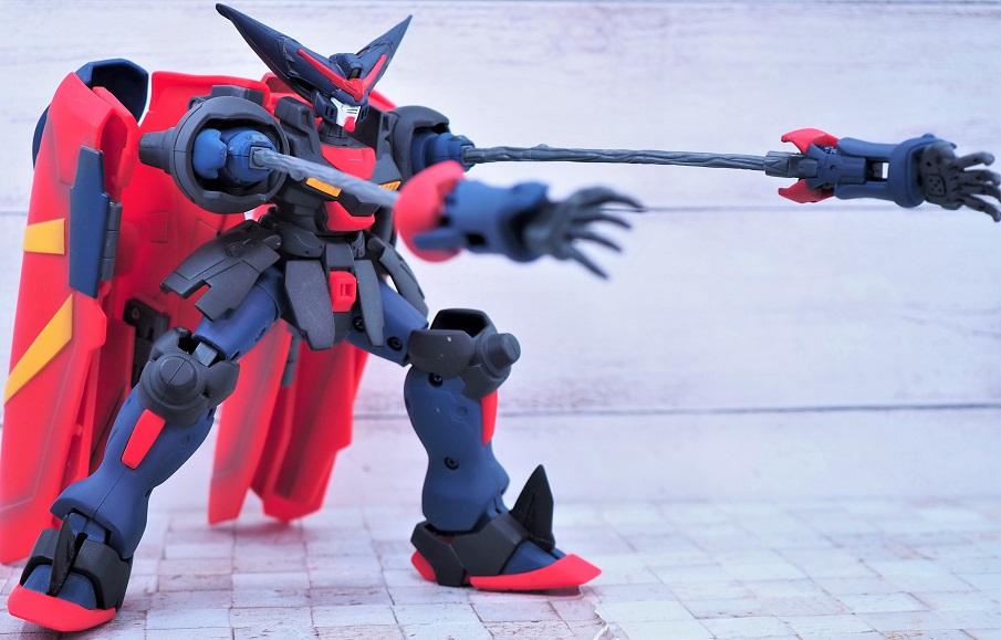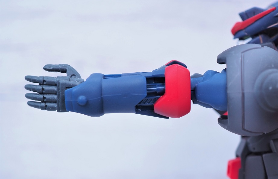 マスターガンダムの腕部伸縮ギミックはスライド可動による再現になっています。