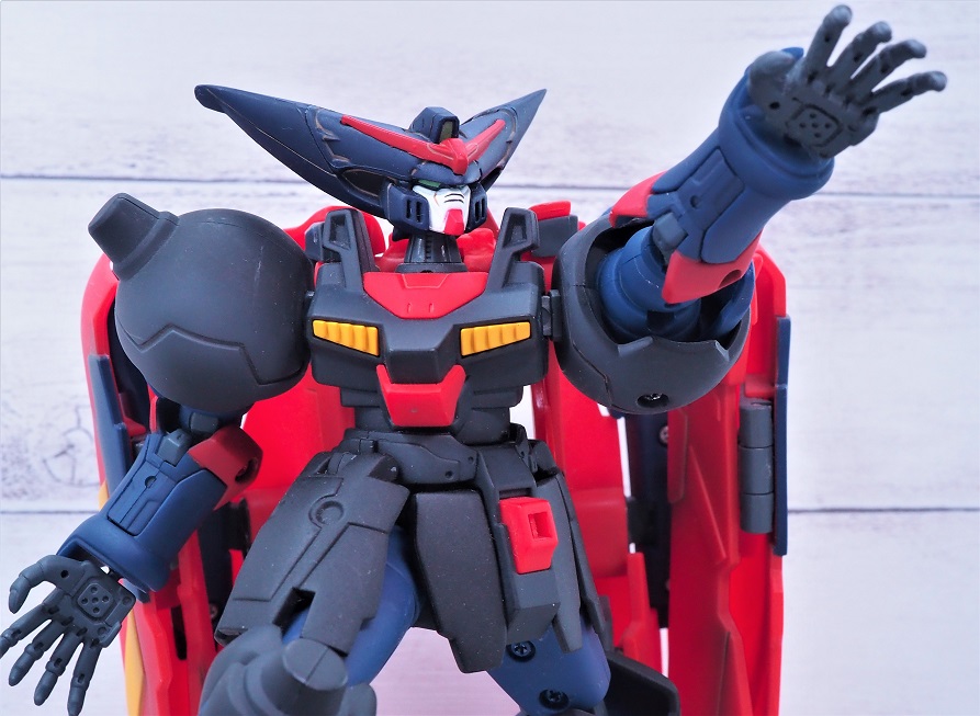 マントを覆たような姿になるんですが、ウイングシールドの変形ギミックはパーツの差し替え一切なし。