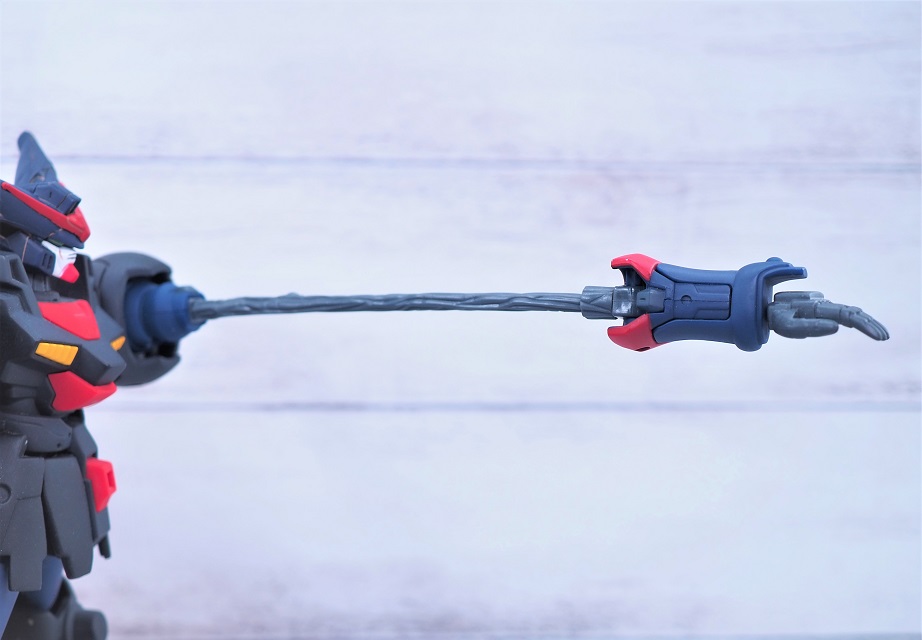 肘を取り外しコードパーツを差し込むことで遠距離攻撃「ディスタントクラッシャー」を再現可能。