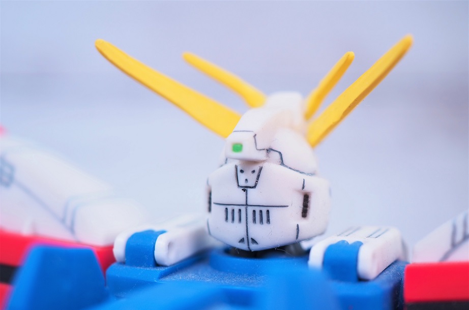 4つの頭部バルカンや頬のダクトなど細かな彩色。