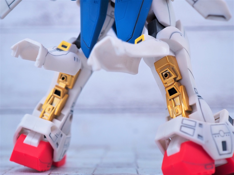 足を前方向に上げることが出来るんですが、横に開こうとするとサイドアーマーと干渉するのであまり動かせません。