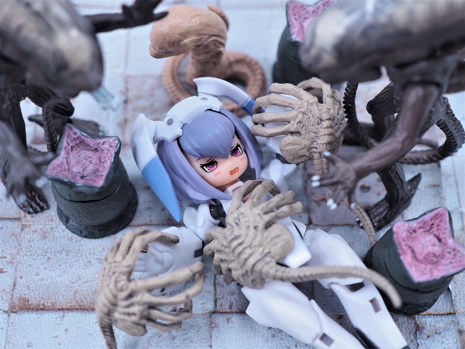 フェイスハガーが顔部分にがっしりホールドしてます。