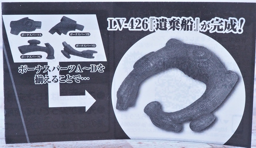 そして各フィギュアに付属するA、B、C、Dのボーナスパーツを揃えると「LV-426 遺棄船」を組み立てる事が可能。