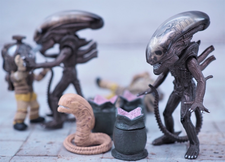 エイリアンの成長過程がフィギュアで楽しめる他、リプリーやケインで映画の名シーンを再現する事もできます。