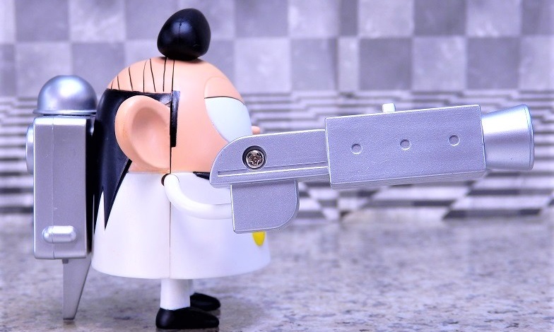 ライフル(吸引機?)は剛くんの手を取り外し、パーツを差し替えます。