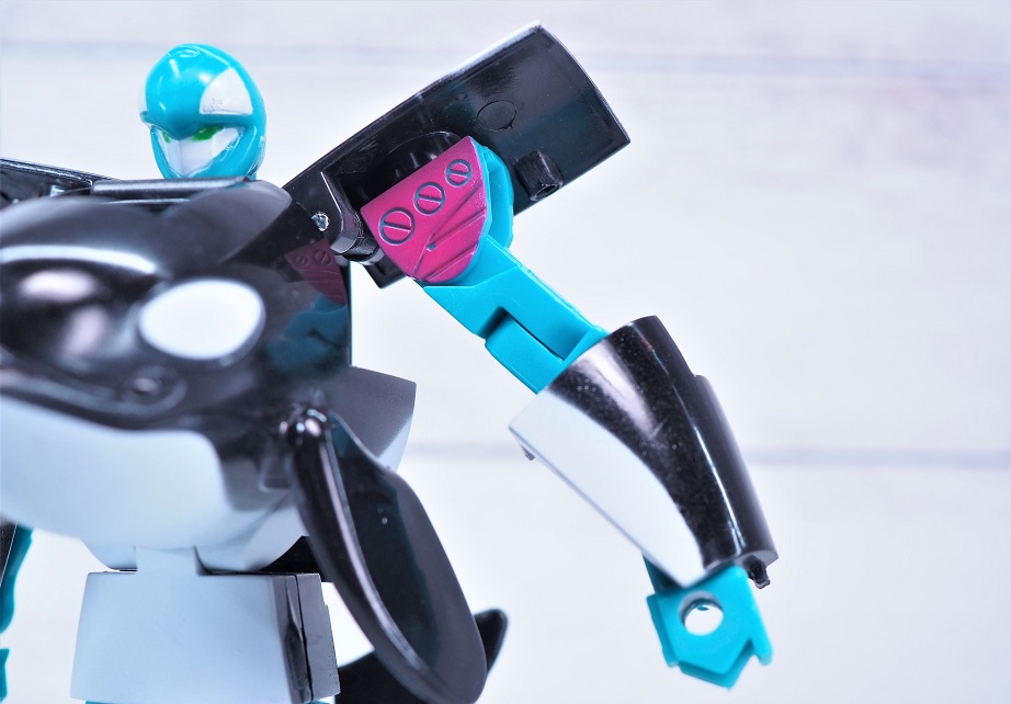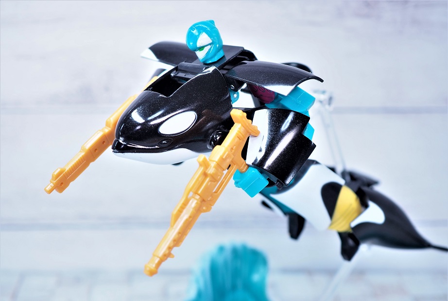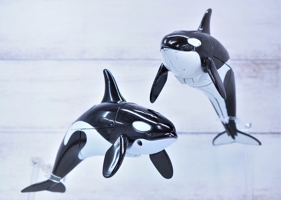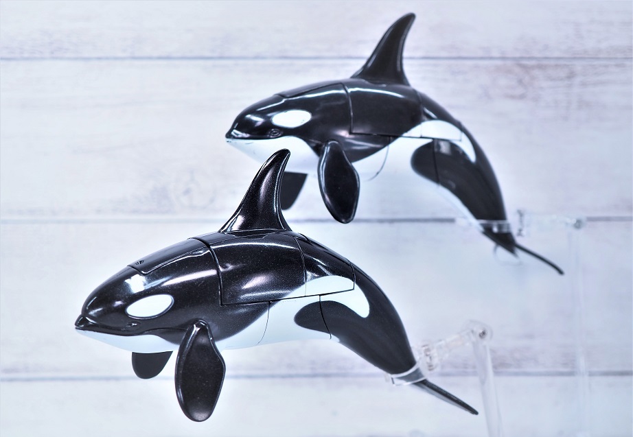 シャチ形態時の造形自体は数十年前から販売されているシーバトロンと同じ。