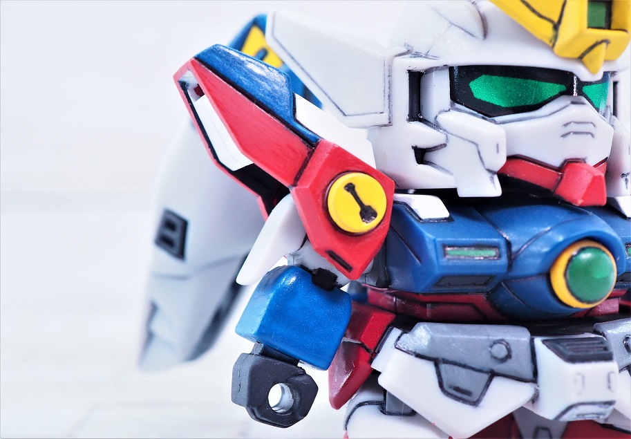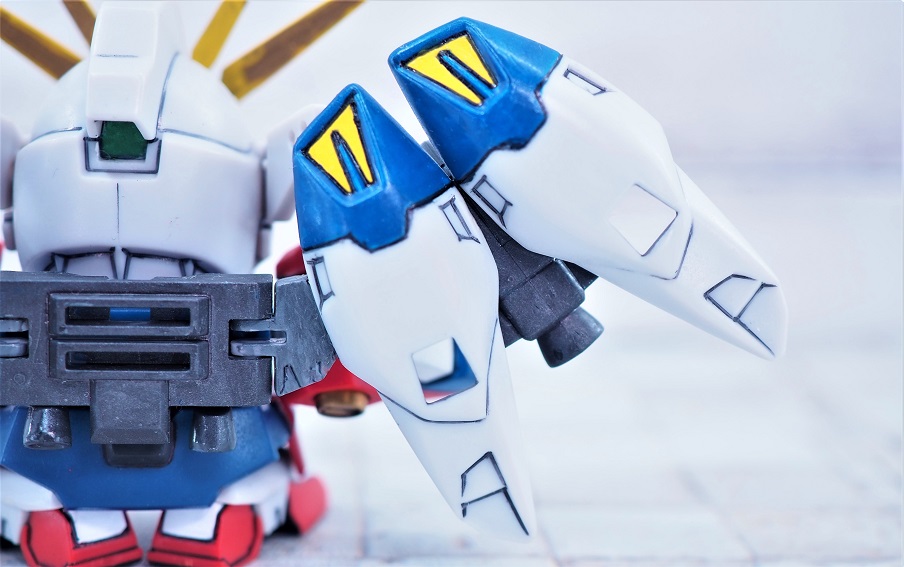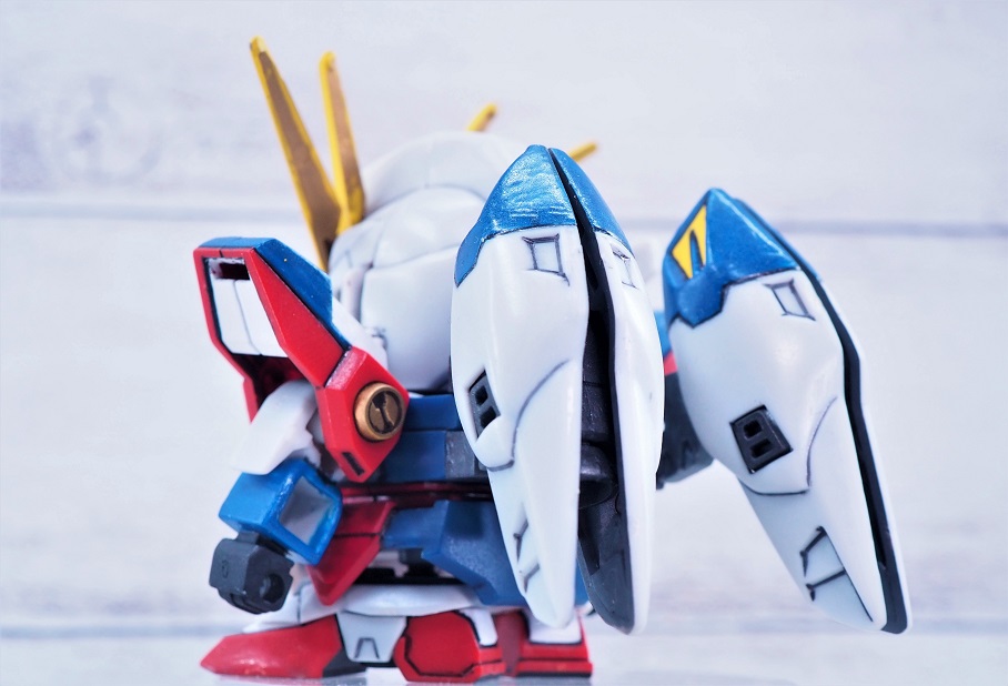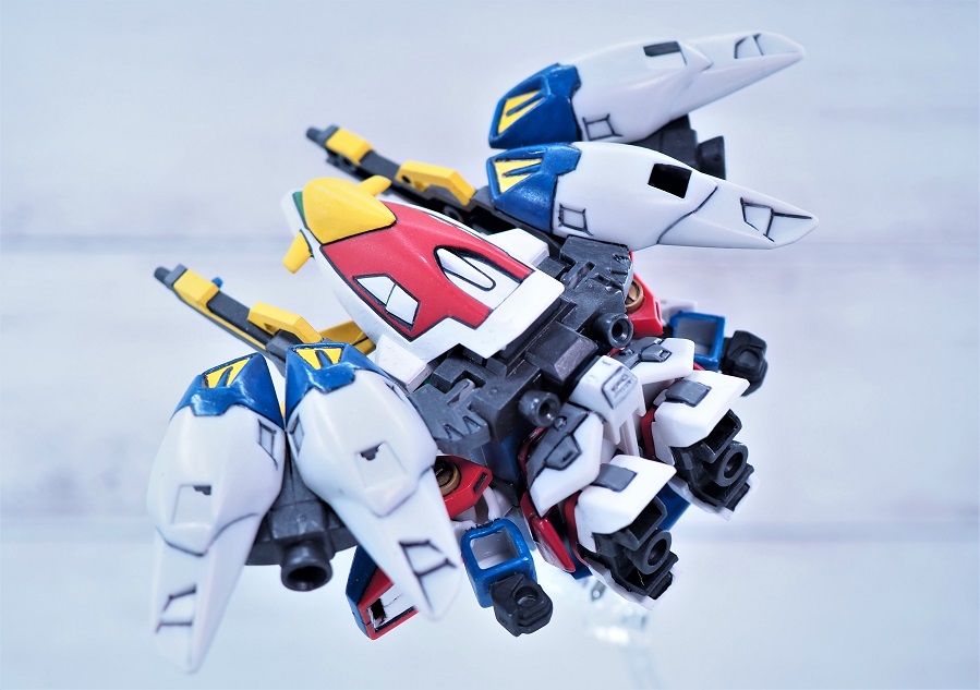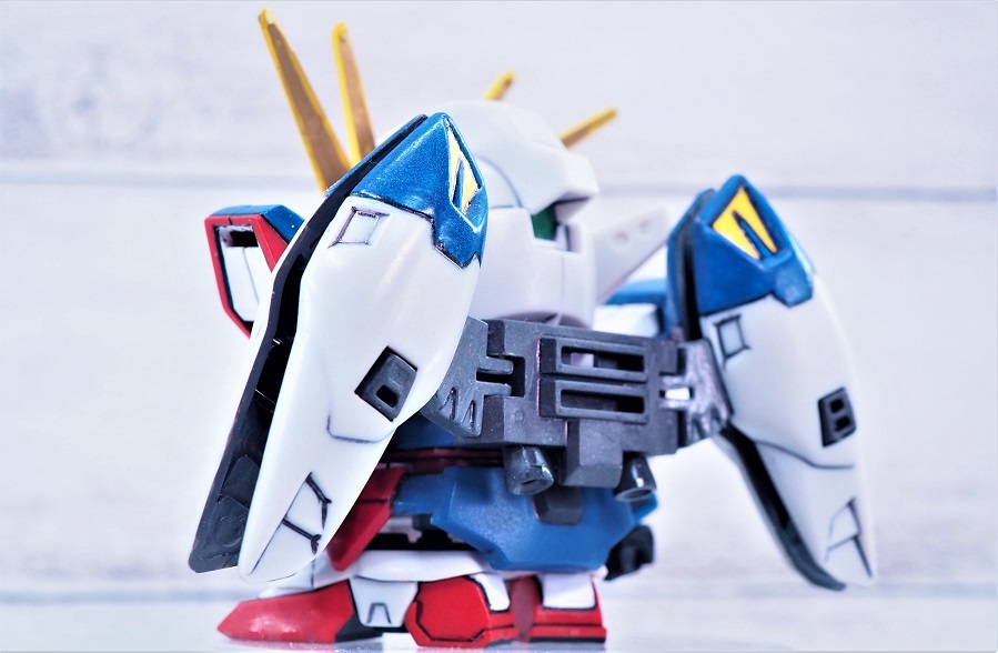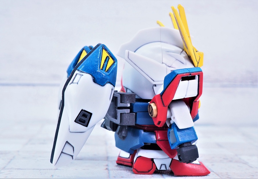 可変するSDガンダムではネックとなる大きな頭部もうまくシールド裏に隠れています。