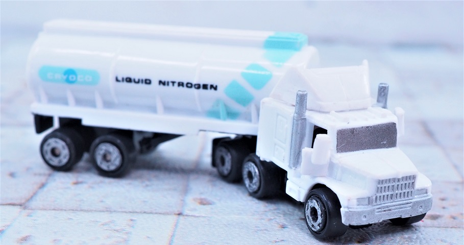 液体窒素のような極低温化学物質の輸送を専門とする、ロサンゼルスに本拠を置く運送会社「Cryoco」のタンカートラック。
