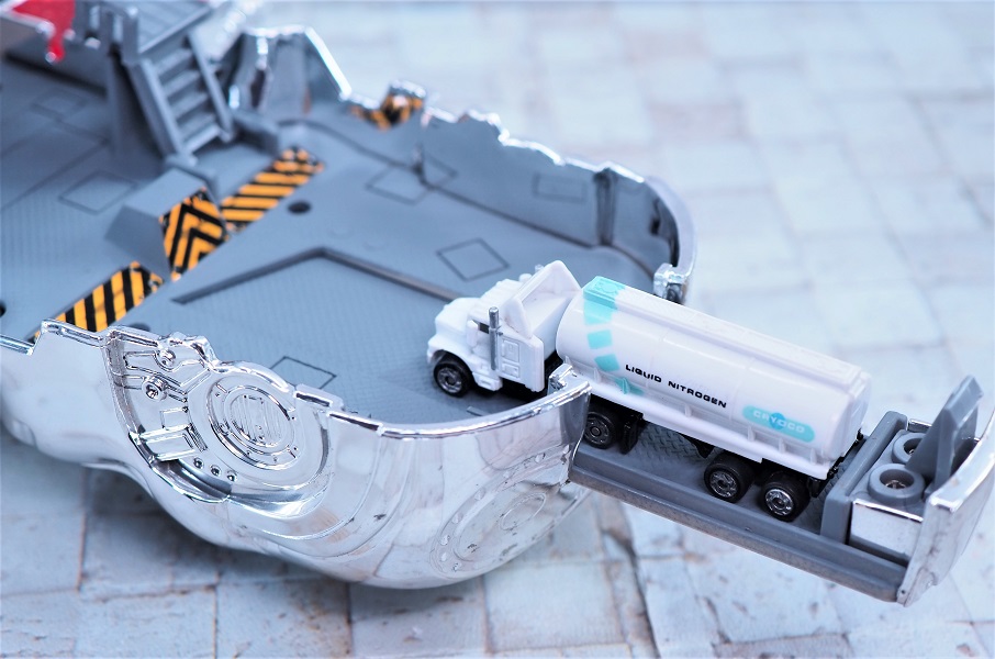 トラックの形状やタンク部分の企業ロゴなど、細かな部分まで本編通りのデザインで再現されています。