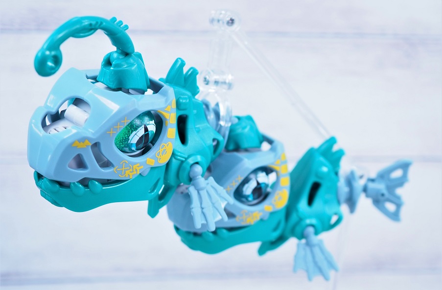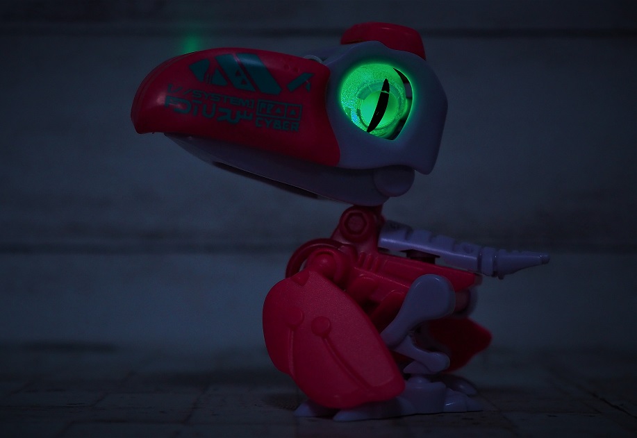 連動して口が開閉し、目の発光とサウンドが鳴り響きます。