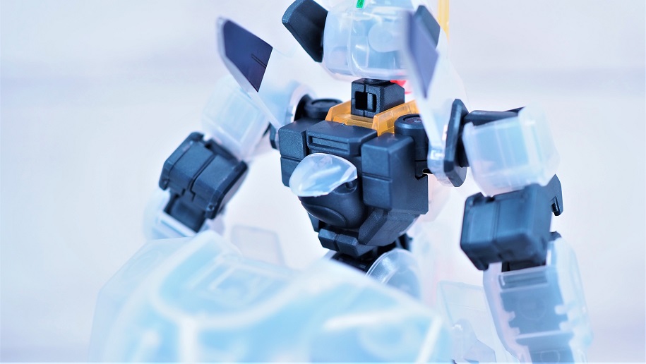 本来隠れてしまうツインアイが少し透けて見える所がクリアカラーキットの魅力だと思います。