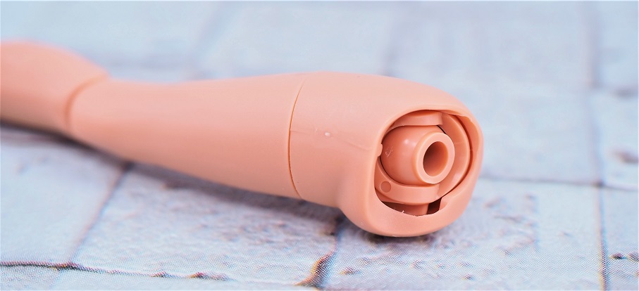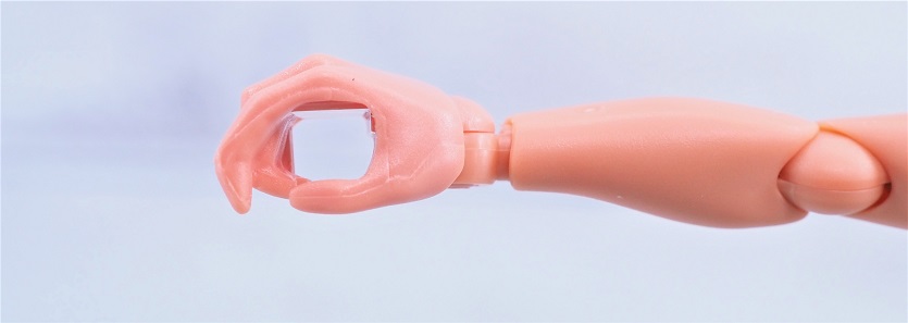 ハンドパーツのジョイントを差し込む穴は、側面はプラの厚みがかなり薄いのでデリケートに扱ってください。