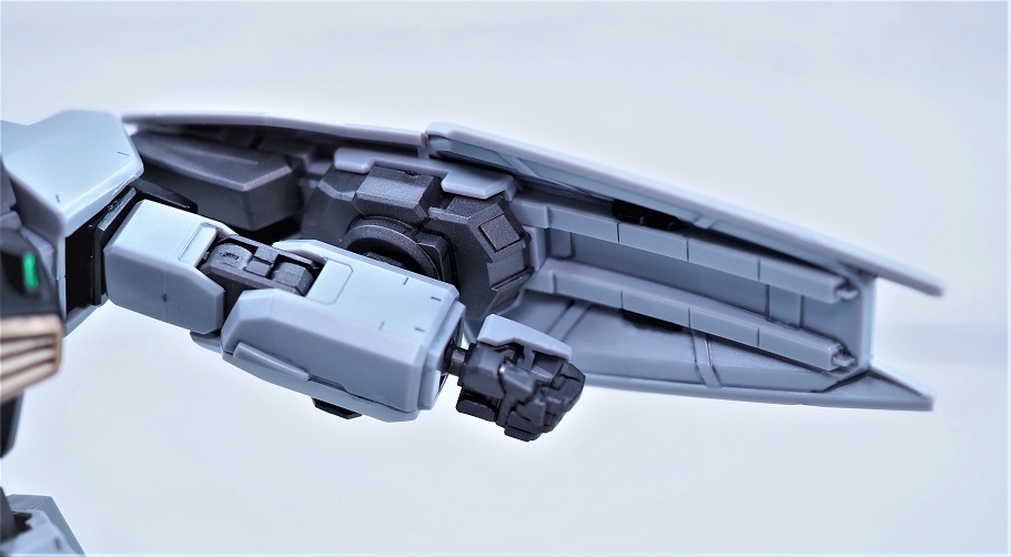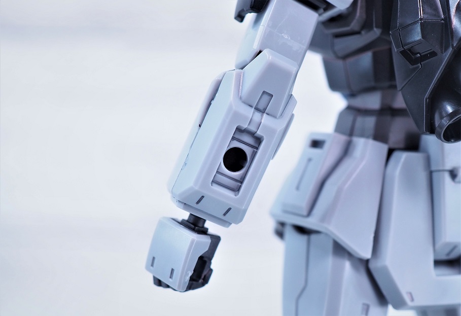 腕部にはシールドを取り付ける3ミリ穴。