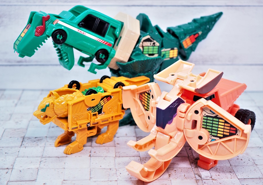 紫の凹ジョイントに凸ジョイントをはめ込むことで、パチっとパーツが噛み合って瞬間変形します。
