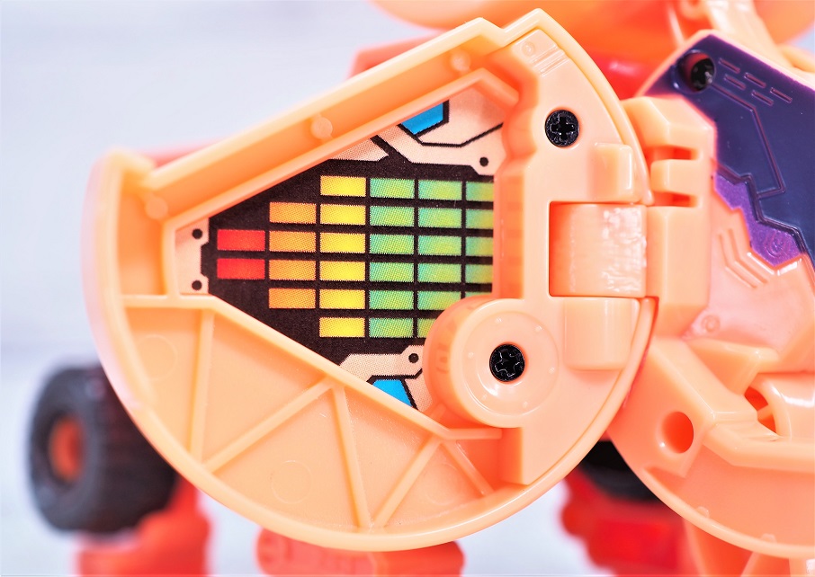 濃いオレンジ色の成形色がメインで、側面の肉抜き部分が結構目立つ外観になっています。