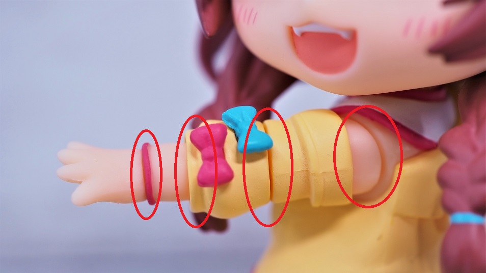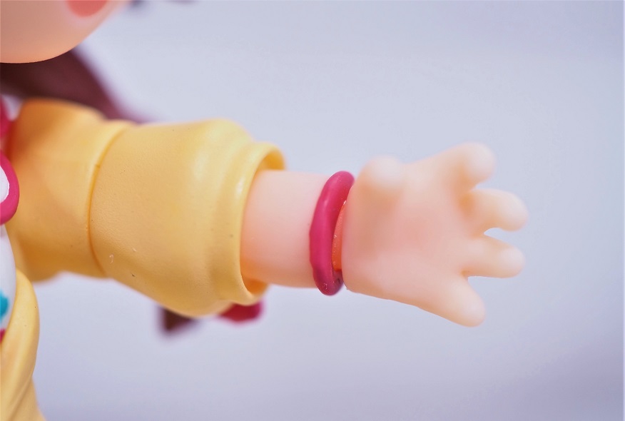 顔横におさげがあるので、腕を上げると干渉して頭が左右に振れなくなってしまいます。