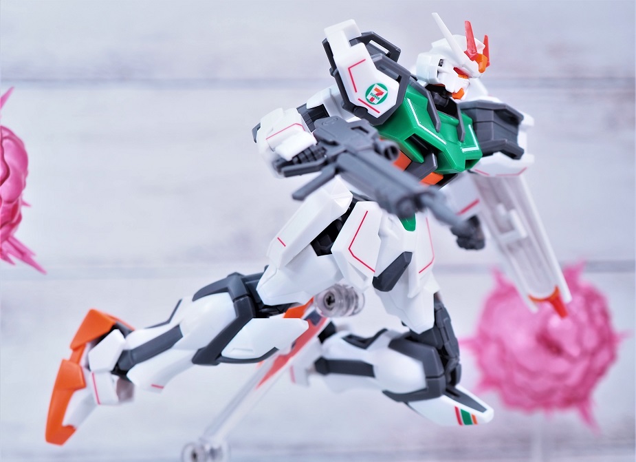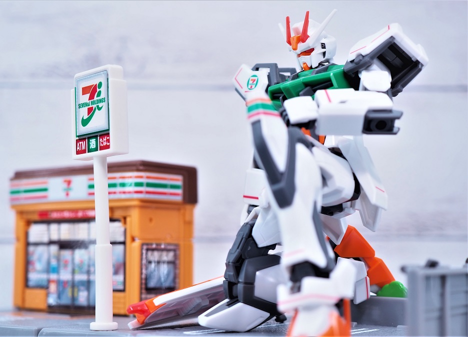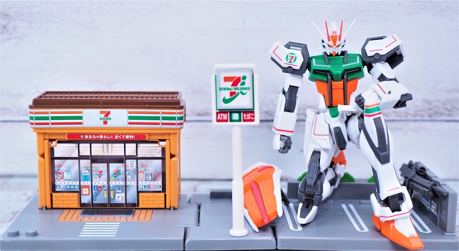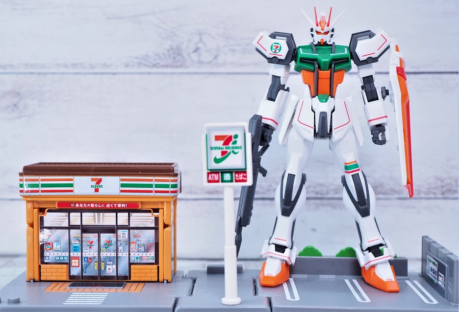 成形色をセブンイレブンのイメージカラーに合わせて変更した限定ガンプラとなっております。